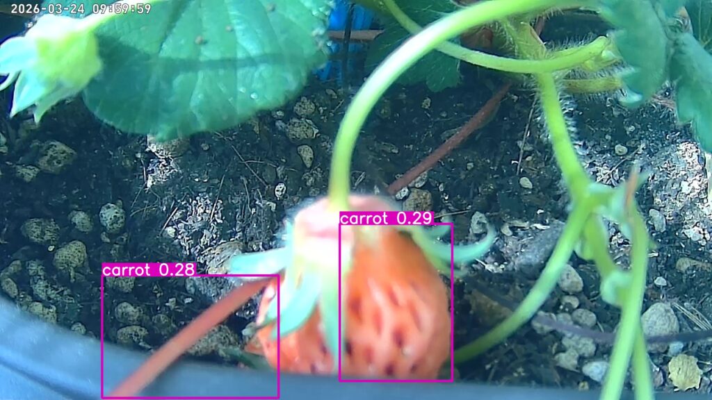 イチゴが少しずつ色づいています🍓。