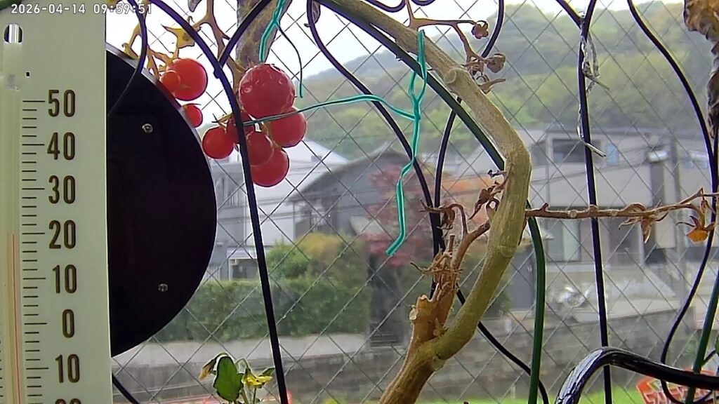 家庭菜園のトマトが真っ赤に色づいてます🍅。